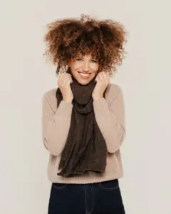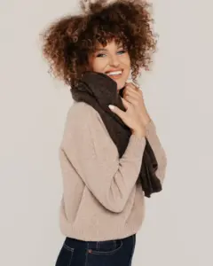 Klassinen ja monikäyttöinen väri sopii helposti sekä arkipukeutumiseen että eleganttiin tyyliin. Huivia voi käyttää monin tavoin – kiedottuna kaulan ympärille tai hartioille heitettynä tyylikkäänä yksityiskohtana.