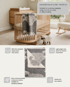 Pehmeä, kodinomainen ja luonnollinen peitto on suunniteltu pienimmille. Valmistettu korkealaatuisesta villasta, se takaa lämmön ja mukavuuden koko yön ajan.