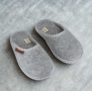 Helppokäyttöiset huonetossut, jotka on valmistettu luonnonhuovasta ja joissa on kumipohja.