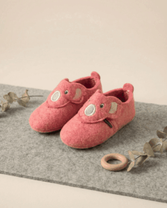 Lasten luonnonvillaiset vaaleanpunaiset huopasaappaat KOALA, WoolLando