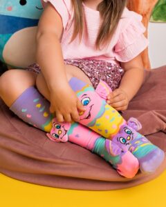 Hauska muotoilu, pehmeys ja mukavuus – nämä värikkäät lasten sukat Candy-hahmolla on suunniteltu ilahduttamaan joka päivä. Kirkkaat värit, leikkisät kuviot ja suloinen hahmo tekevät niistä sekä tyylikkään että käytännöllisen lisän.