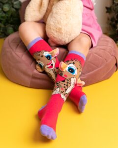 Hauskat, pehmeät ja mukavat – nämä värikkäät lasten sukat CHEEKY CHEETAH -hahmolla tuovat iloa jokaiseen päivään. Kirkkaat värit, leikkisät kuviot ja suloinen gepardi tekevät sukista sekä tyylikkäät että käytännölliset.