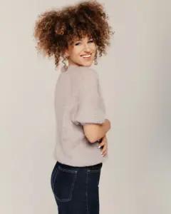 Universaali väri ja hienovarainen pörröinen efekti antavat tälle neuleelle romanttisen ja ainutlaatuisen luonteen. Se on vaate, joka sopii sekä arkeen että erityisiin tilaisuuksiin, kun kaipaat mukavuutta ja eleganssia. Yhdistä farkkuihin tai hameeseen – näytät aina tyylikkäältä ja naiselliselta.