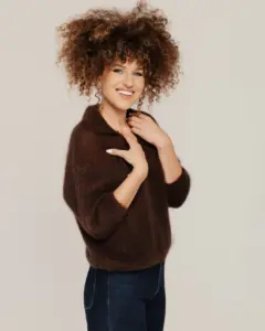 Universaali väri ja hienovarainen pörröinen efekti antavat tälle neuleelle romanttisen ja ainutlaatuisen luonteen. Se on vaate, joka sopii sekä arkeen että erityisiin tilaisuuksiin, kun kaipaat mukavuutta ja eleganssia. Yhdistä farkkuihin tai hameeseen – näytät aina tyylikkäältä ja naiselliselta.