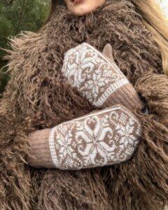 Naisten ruskeat merinovillalappaset SNOWFLAKES, WoolLando
