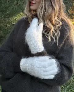 Naisten patkot – lämpimät, kodikas ja tyylikäs kylmällä kaudella. Valmistettu pehmeästä angoravillasta, ne erottuvat poikkeuksellisella pehmeydellänsä ja keveydellänsä, pitäen kädet lämpiminä jopa kylmimpinä päivinä.
