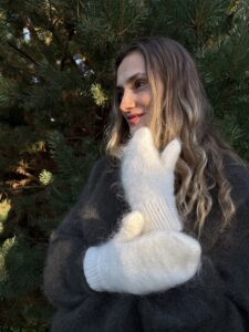 Naisten valkoiset angoravillaiset lapaset LUNA