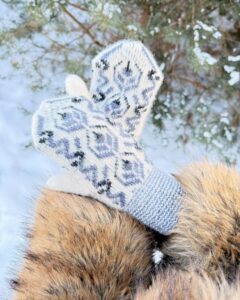 Naisten valkoiset merinovillalappaset SNOWFLAKE, WoolLando