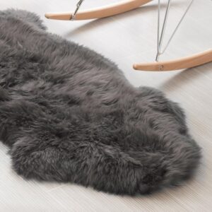 Paksu tummanharmaa merinovillainen lampaantalja 80 × 120 cm, WoolLando