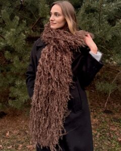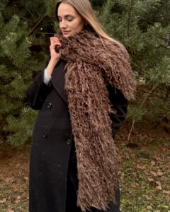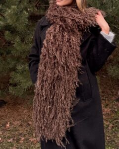 Pitkä BOA-tyylinen ruskea huivi on näyttävä ja ylellinen asuste, joka lisää heti eleganssia ja luonnetta mihin tahansa asuun. Pehmeä, pörröinen ja miellyttävä koskettaa, se ei vain paranna ulkoasuasi, vaan myös lämmittää.