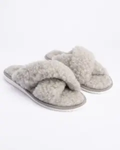 WoolLando luonnon merinovillaa harmaat avokärkiset tossut