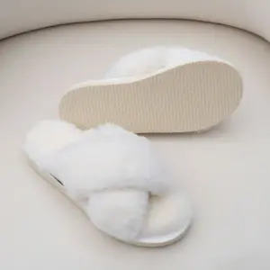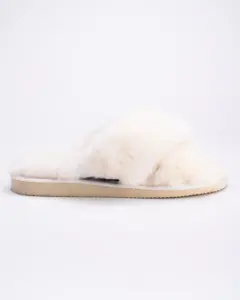 WoolLando naisten luonnonturkis valkoiset avoimet tossut